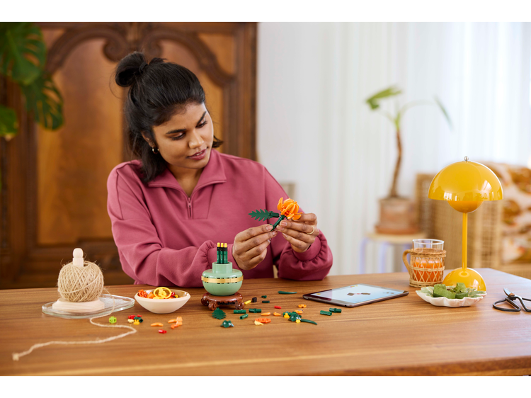 Grow creativity with the LEGO® Icons Chrysanthemum home office decor building set for adults Easy to assemble, the model chrysanthemum plant makes an elegant centerpiece for any space Blooming buds with posable leaves and petals Captures the vivid orange flower in various stages, including 1 in fu ll bloom, 1 blossoming and 2 in bud Ages 18+