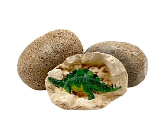 Become your own paleontologist as you excavate dinosaur figures from plaster dino eggs! Excavate 10 dino figures from 10 dino egg replicas using a rock hammer and chisel! Make a prehistoric diorama with the dino figures and prehistoric plant stickers Learn about the most fascinating creatures ever to walk the Earth Kit Includes: Rock Hammer, Chisel, 10 Dino Eggs with figures inside, Cardboard Diorama, Sticker Sheet Ages 4+