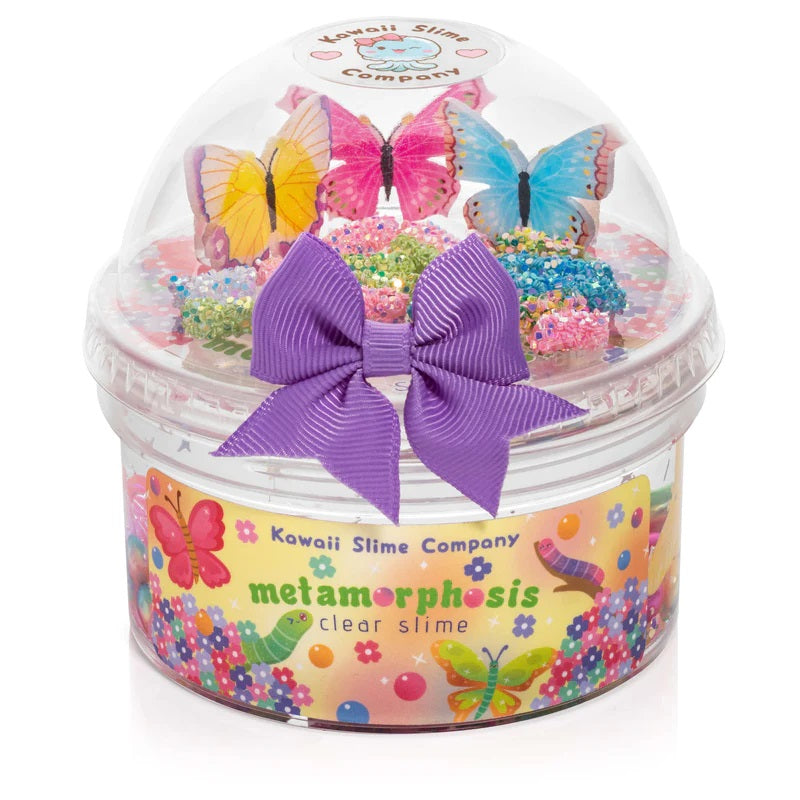 This gorgeous Slime was inspired by the life cycle of a butterfly. We include beads and baubles that are reminiscent of each stage of a butterfly metamorphosis. Stunning rainbow pearl beads as the "egg", sparkly caterpillar like charms as the "larvae" and "pupa"stage and of course colorful butterfly charms! Each Metamorphosis Slime has been scented with a very soft asian pear fragrance and has the most clear and satisfying texture, perfect for pokes and bubble pops. Ages: 3+