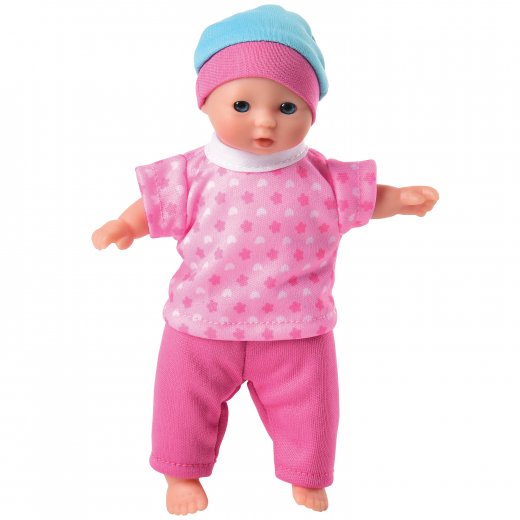 Soft bodied doll with vinyl head, feet and arms. Hat is tethered to shirt Vibrant blue eyes Product includes 1 Tiny Soft Baby. Colors vary, let us choose for you! Age: 1+