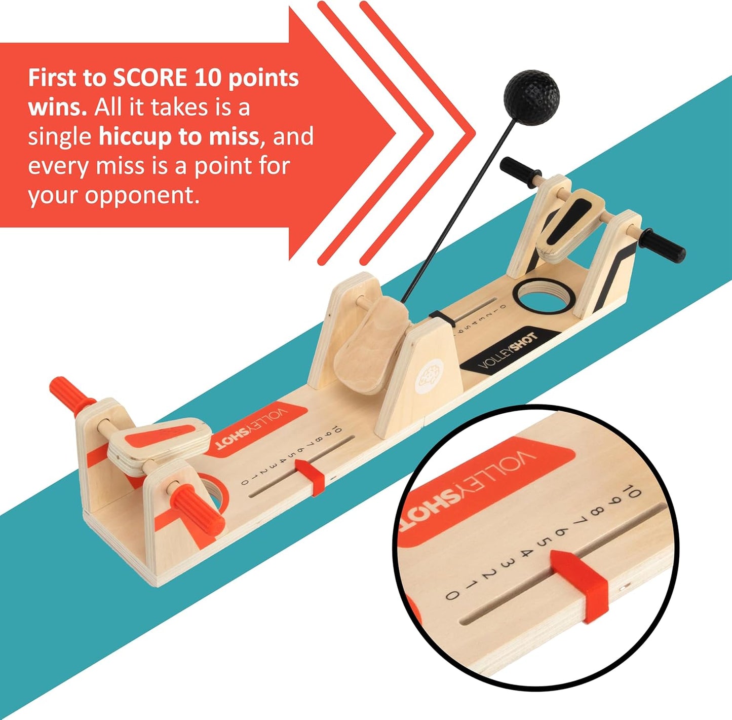 Skill game of knocking a ball back and forth Every time you miss, your opponent scores a point; The first to 10 points wins! Assembly required (tools and instructions included) Ages 8+